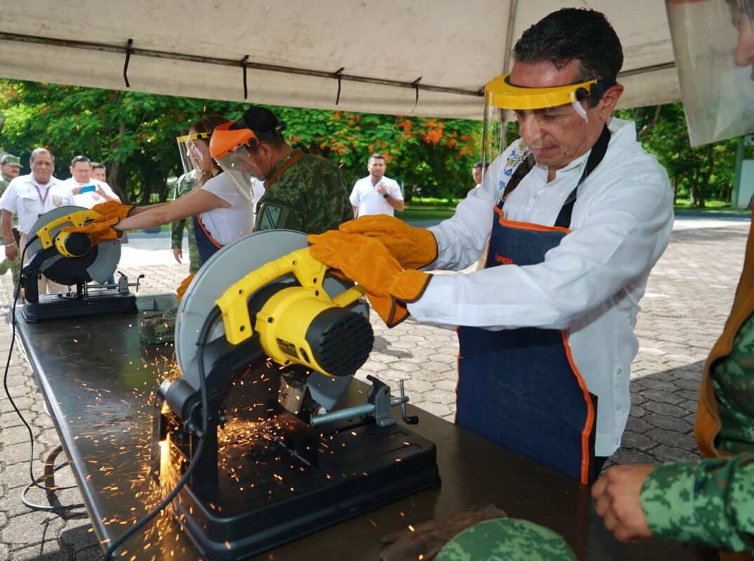El gobernador Carlos Joaquín y el General Brigadier Diplomado de Estado Mayor Héctor Ortiz Caletty, comandante de la Guarnición Militar de Cancún, encabezaron la ceremonia de Destrucción de Armamento de la Secretaría de la Defensa Nacional que se realizó a través de las Comandancias de la X Región Militar y la 34/a Zona Militar.