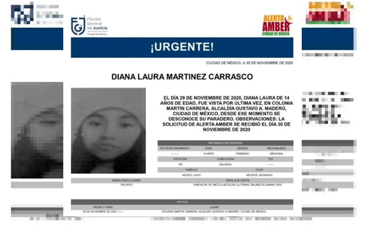 Como se recordará el 30 de noviembre del año pasado, la Fiscalía de la Ciudad de México emitió la Alerta Amber, de Diana Laura, quien tenía 14 años.