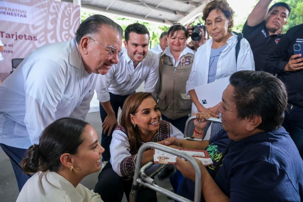 La gobernadora Mara Lezama Espinosa, participó en la entrega en Cancún de tarjetas del Banco del Bienestar del programa de adultos mayores, con lo que se avanza de la mano del Gobierno de México en atender a los grupos más vulnerables.