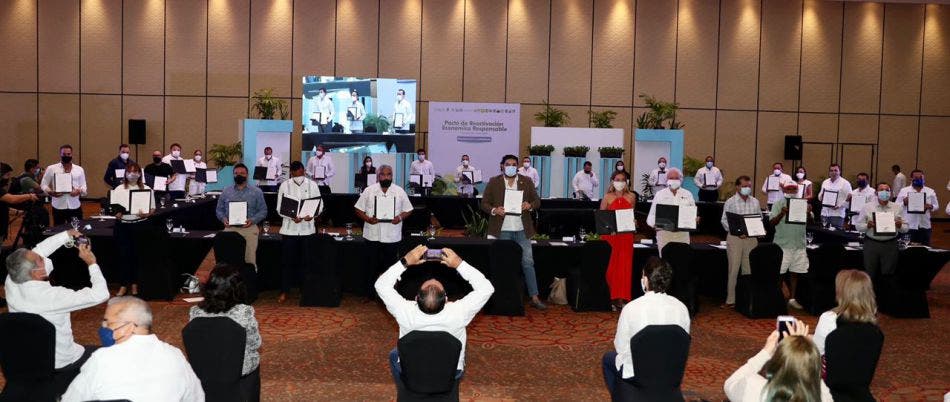 Por ello se llevó a cabo la etapa final de la firma del “Pacto de Reactivación Económica Responsable” con los representantes de los sectores turísticos, restauranteros, educativos y de transporte; las cámaras empresariales; los sindicatos de trabajadores; los sectores de pesca, agropecuarios y de comercio; el sector juvenil y la sociedad civil, entre otros que se comprometieron a fortalecer medidas y hábitos ante la nueva normalidad.