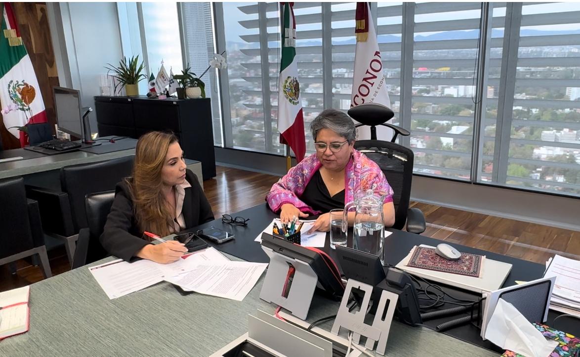 Acompañada del secretario particular, Ángel Rivero Palomo, la Gobernadora agradeció a la Secretaria de Economía por el apoyo con diversos programas que se han implementado en el estado, por lo que reiteró que el trabajo en equipo es fundamental para avanzar en la transformación del estado y generar prosperidad compartida para todas y todos.