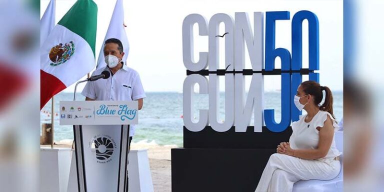 En el marco del izamiento de banderas Blue Flag en Playa Linda, ubicada en la zona hotelera de Cancún, Carlos Joaquín subrayó que las banderas azules que se han otorgado a las playas de Cancún permiten brindar a los turistas la confiabilidad en las playas y permiten al Caribe Mexicano permanecer como uno de los destinos turísticos más importantes del mundo.