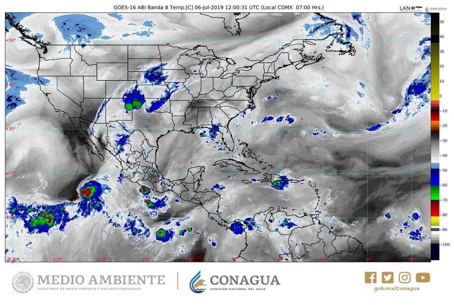 En las próximas 24 horas, se espera el establecimiento de una vaguada sobre el occidente de la Península de Yucatán, que en combinación con el ingreso de humedad y el fuerte calentamiento diurno, favorecerá el desarrollo de nublados con probabilidad para intervalos de chubascos con tormentas localmente fuertes en el noreste, centro y noroeste de Yucatán; en el norte, centro y suroeste de Campeche, en tanto que en el sur de Quintana Roo se esperan intervalos de chubascos al final del día.