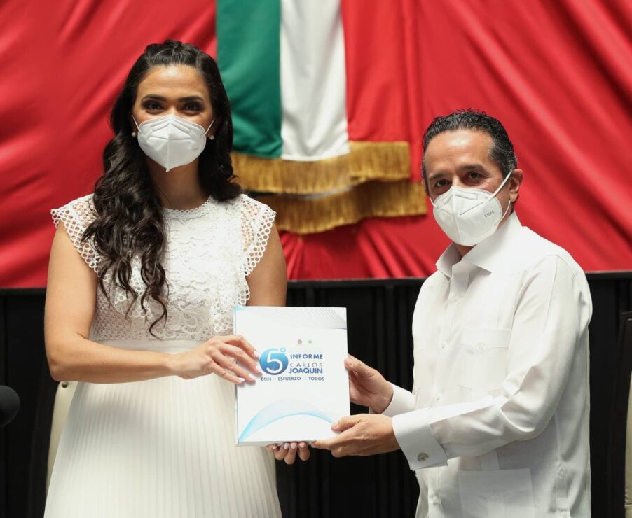El gobernador Carlos Joaquín cumplió con el artículo 66 de la Constitución Política del Estado Libre y Soberano de Quintana Roo al entregar ante los diputados de la LVI Legislatura del Congreso del Estado el 5º Informe de rendición y fiscalización de cuentas que guarda la administración pública.