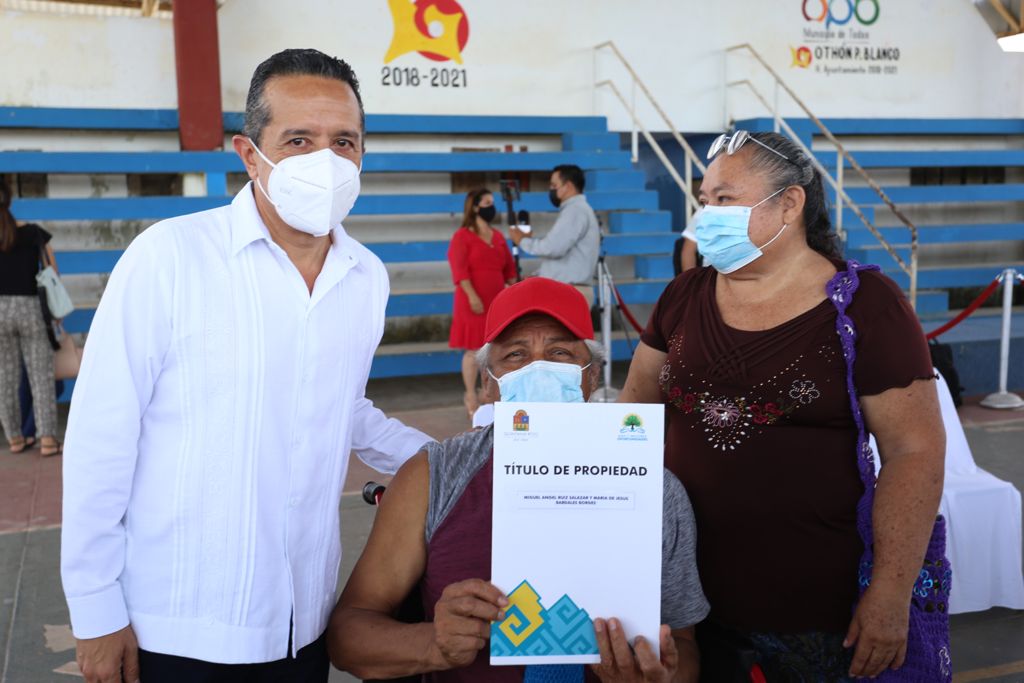 En el quinto año de gobierno, se entregaron mil 741 títulos de propiedad. De ese total, mil 91 correspondieron a Benito Juárez, 306 a Cozumel, 27 a Felipe Carrillo Puerto, 11 a Isla Mujeres, 237 a Othón P. Blanco, 31 a Puerto Morelos, 22 a Solidaridad y 16 a Tulum, que significaron 10 millones 141 mil pesos en subsidios, en beneficio directo de personas de escasos recursos.