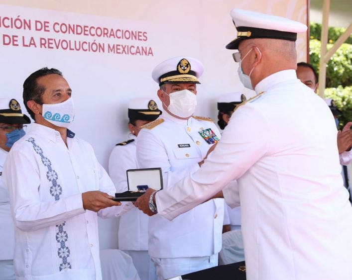 En la Quinta Región Naval de #IslaMujeres conmemoramos el 110 Aniversario de la #RevoluciónMexicana, con la Ceremonia de Ascensos e Imposición de Condecoraciones a elementos de la @SEMAR_mx, que con compromiso y entrega han servido a #QuintanaRoo. #JuntosSaldremosAdelante pic.twitter.com/xYvn9kaaoB
