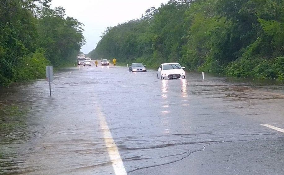 La autopista Mérida-Cancún se encuentra cerrada en el tramo Pisté-Valladolid para autos compactos, debido a la acumulación de agua.