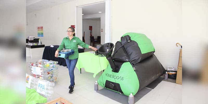 La gerente comercial de la empresa Home Green, añadió que el biodigestor es una cámara mecánica la cual trabaja a base de estiércol, agua y residuos orgánicos, y logra alcanzar producciones al mes hasta el equivalente a 53 litros de gas LP.