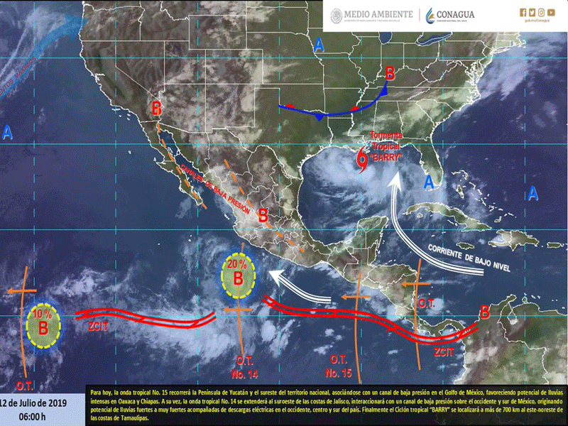 La tormenta tropical “Barry”, del Golfo de México, por su distancia y que mantiene su trayectoria pronosticada, no representa ningún riesgo para la Península de Yucatán y Quintana Roo.