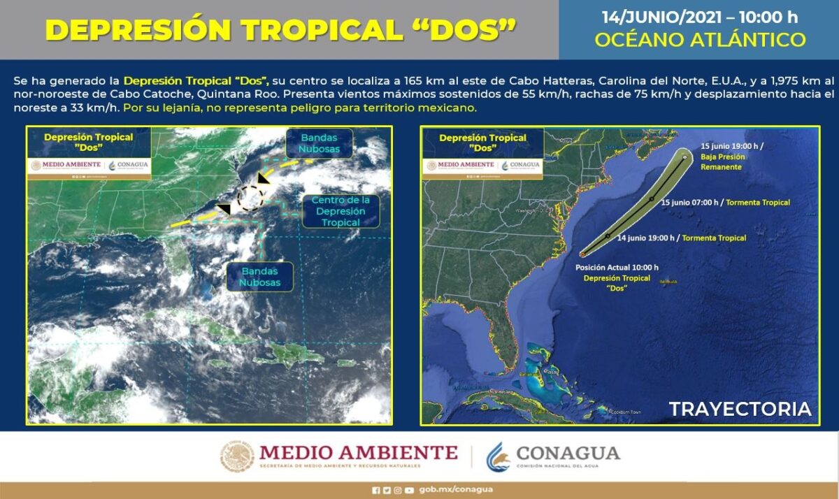 Dicho fenómeno meteorológico se localiza a mil 980 kilómetros al noreste del Cabo Catoche, Quintana Roo, por lo que no representa riesgo alguno hasta el momento.