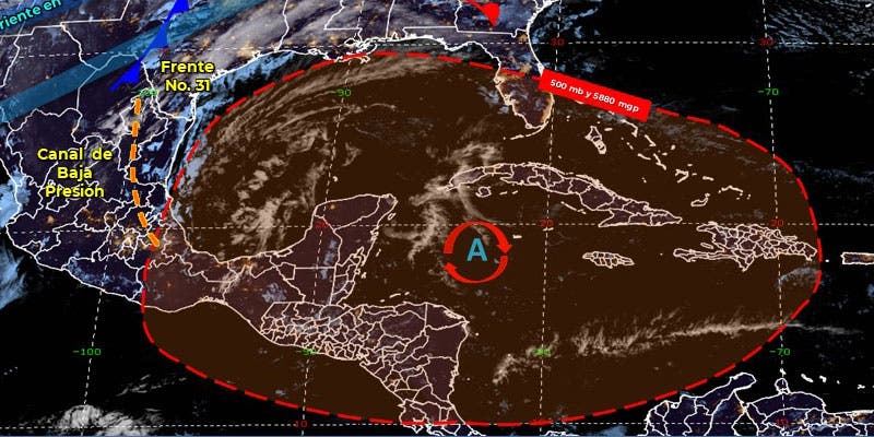 Finalmente, un sistema de alta presión ocasionará escaso potencial de lluvia, ambiente cálido a caluroso durante el día, así como viento de componente sur «surada» en el litoral del Golfo de México.