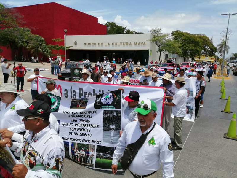 Dignatarios mayas, representantes de galleros y representantes de caleseros de los municipios de Cozumel, Othón P. Blanco, Bacalar, Lázaro Cárdenas, Felipe Carrillo Puerto y otros, acudieron a la capital del estado en protesta por la Ley de Protección y Bienestar Animal. José Julio Azcorra representante de los caleseros de la Isla de las Golondrinas advirtió que buscarán amparos contra esta ley que lesiona la economía de decenas de familias.