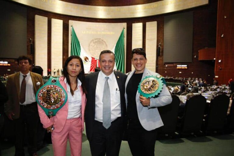 “Hoy en esta cámara de Diputados casi la mitad son mujeres y en la comisión que presidio son una amplia mayoría, mujeres que al igual que Yesenia son luchadoras en un deporte-llamémosle así- que es la política llena de epítetos y calificativos semejantes al boxeo” afirmó Alegre Salazar.