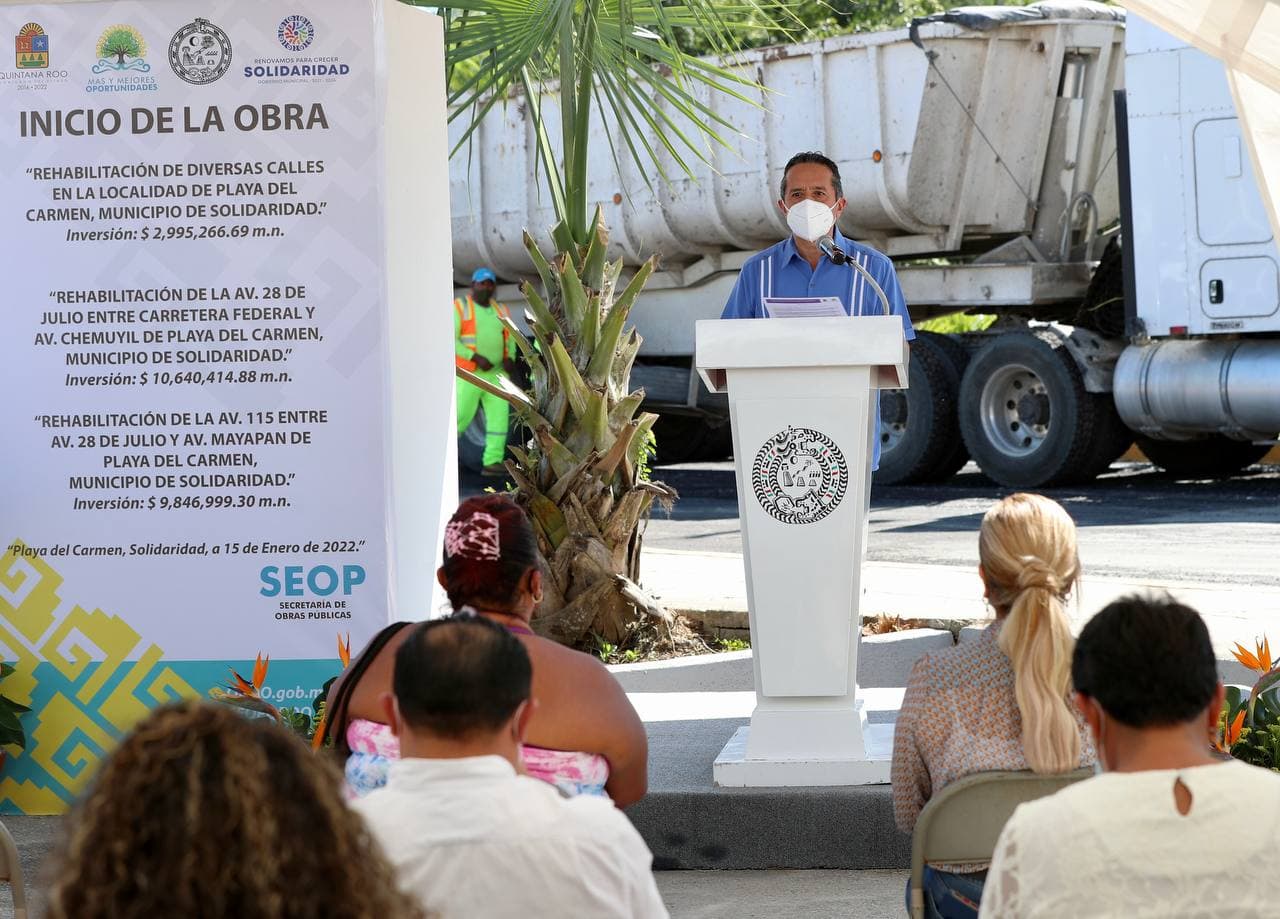 El gobernador señaló que durante su administración se han hecho distintas obras viales y urbanas en las que se han invertido más de 100 millones de pesos en obras del municipio de Solidaridad.
