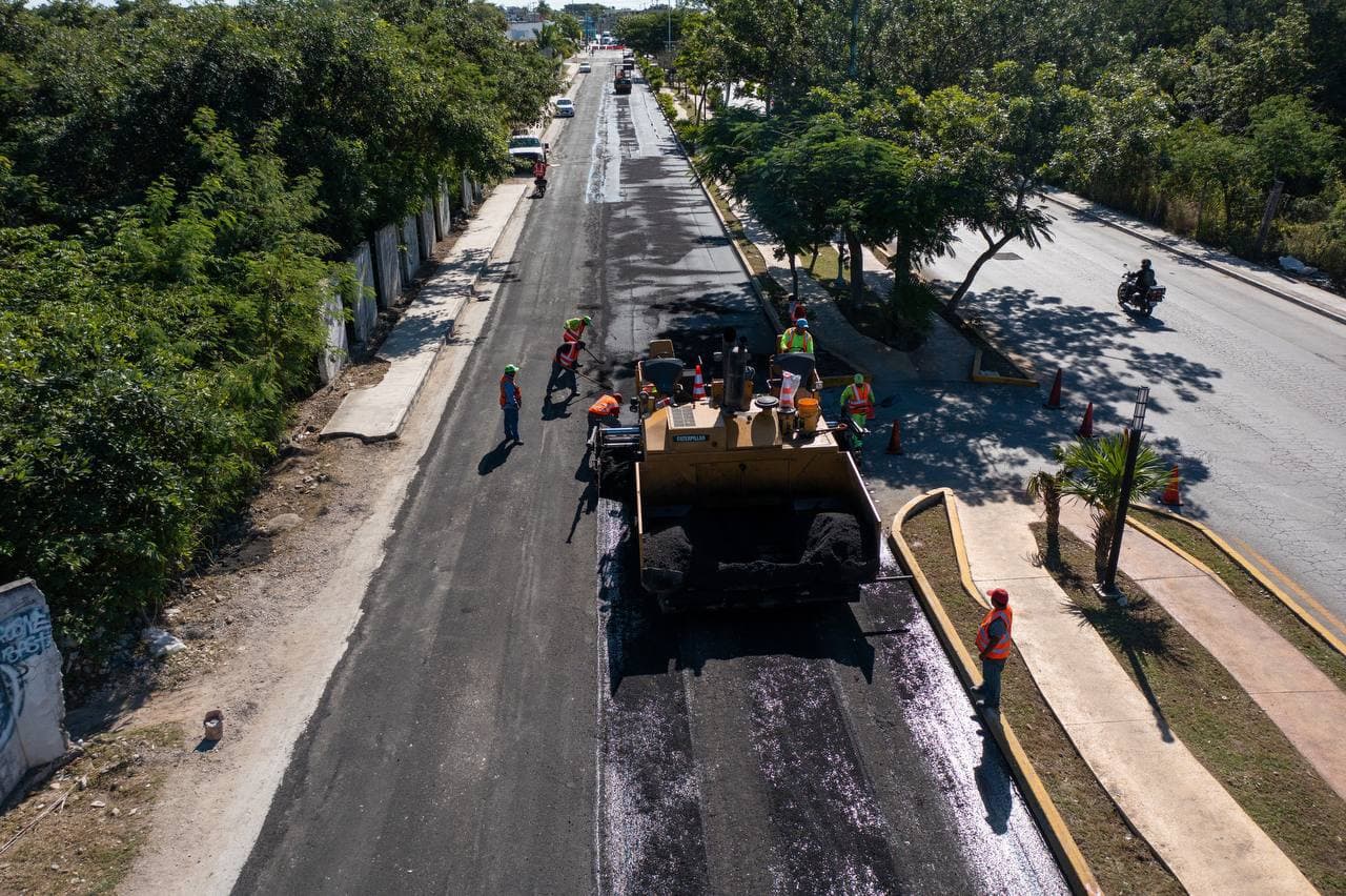 Asimismo, en las obras de la Avenida 28 de julio entre carretera federal y Av. Chemuyil se invierten 10 millones 640 mil pesos para trabajos de colocación de 6 mil 208.32 metros cuadrados de carpeta de concreto asfáltico de 5 centímetros de espesor, repavimentación en 15 mil 199.68 metros cuadrados con concreto asfáltico en caliente de 3 centímetros de espesor y señalamiento horizontal con pintura termoplástica.