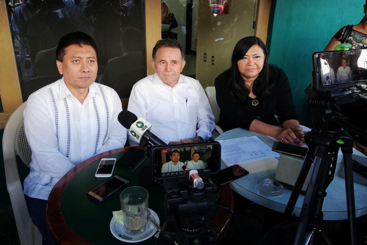 José Luis Pech Várguez en conferencia de prensa junto con los diputados federales Mildred Ávila Vera y Jesús Pool Moo.