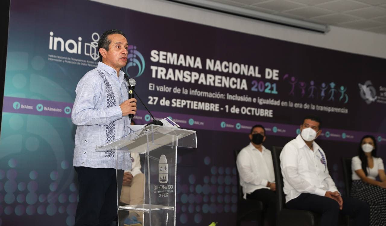Quintana Roo se encuentra hoy en los primeros lugares en el ranking de transparencia en el país, afirmó el gobernador Carlos Joaquín, al inaugurar los trabajos de la Semana Nacional de la Transparencia 2021, bajo el tema “El valor de la información: Inclusión e igualdad en la era de la transparencia” a realizarse del 27 de septiembre al 1 de octubre.