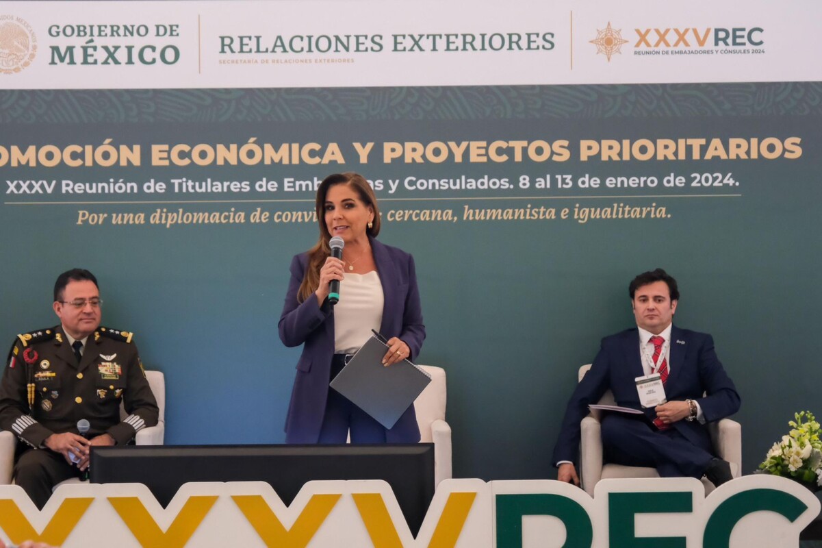 Al participar en la Reunión de Embajadores y Cónsules 2024 convocada por la Secretaría de Relaciones Exteriores (SRE) con el tema Estrategia de Colaboración para la Promoción Económica y de Proyectos Prioritarios, la gobernadora de Quintana Roo Mara Lezama Espinosa destacó los beneficios económicos directos para las comunidades locales, incluyendo la creación de empleo y el fomento de pequeñas y medianas empresas que impulsa el Tren Maya.