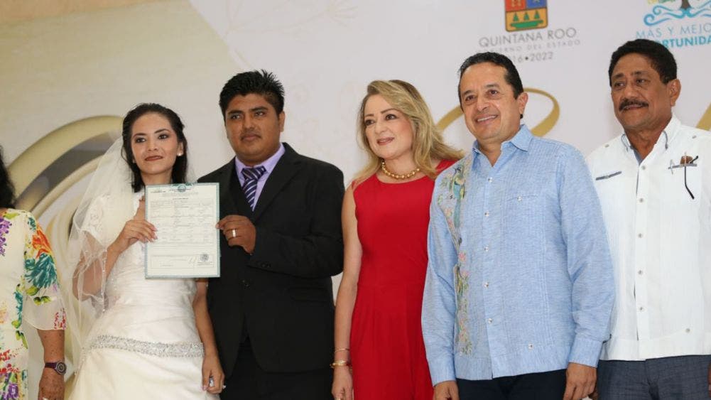 El gobernador Carlos Joaquín informó que hoy, simultáneamente en todo el estado, contrajeron matrimonio mil 21 parejas.