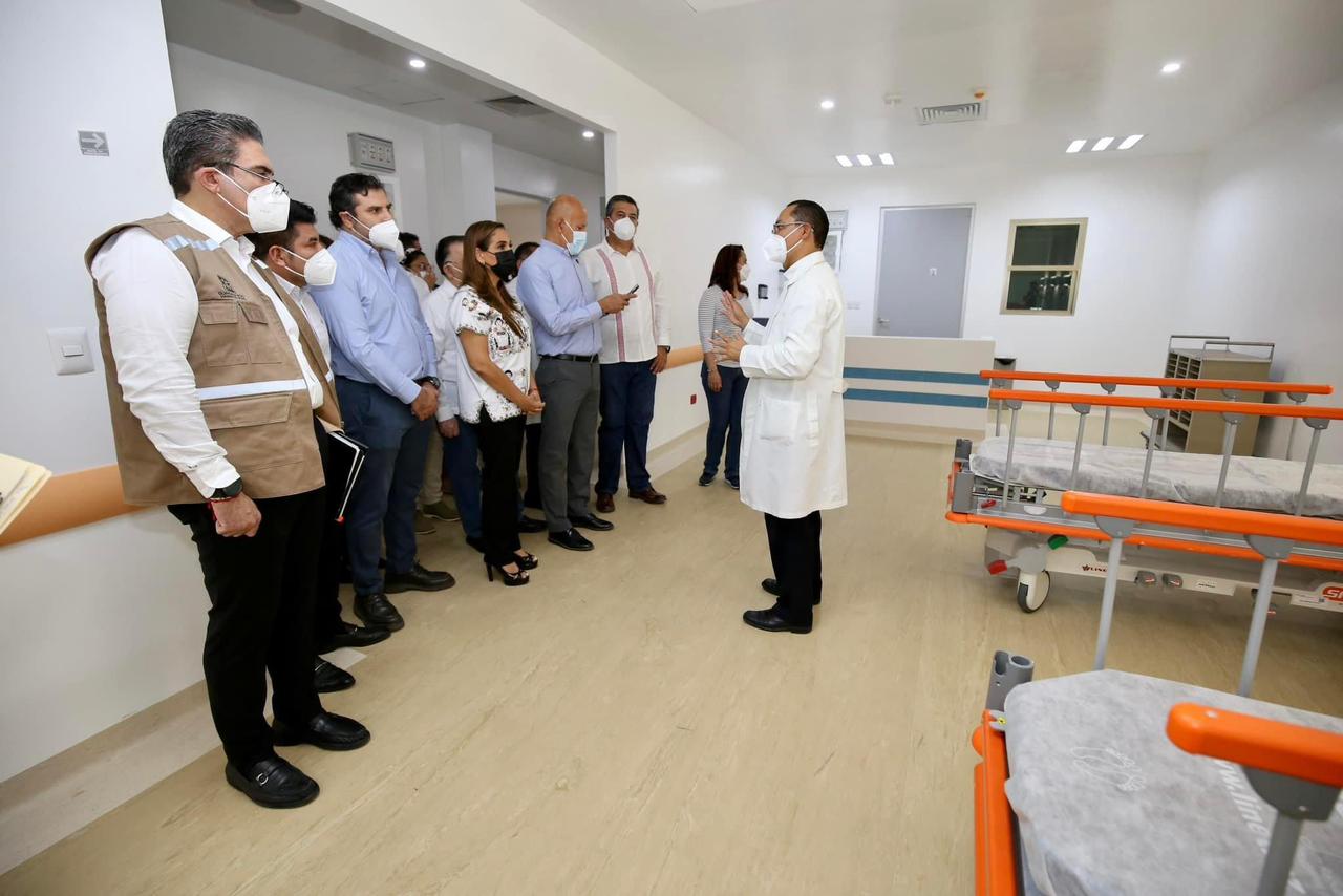 El recorrido inició en el Hospital de Especialidades (Oncológico) de Chetumal, una unidad hospitalaria en la que se invirtieron 532 millones de pesos en obra y equipamiento, cuenta con acelerador lineal, el cual es un equipo especializado que se utiliza para destruir células cancerosas sin afectar el tejido normal circundante.