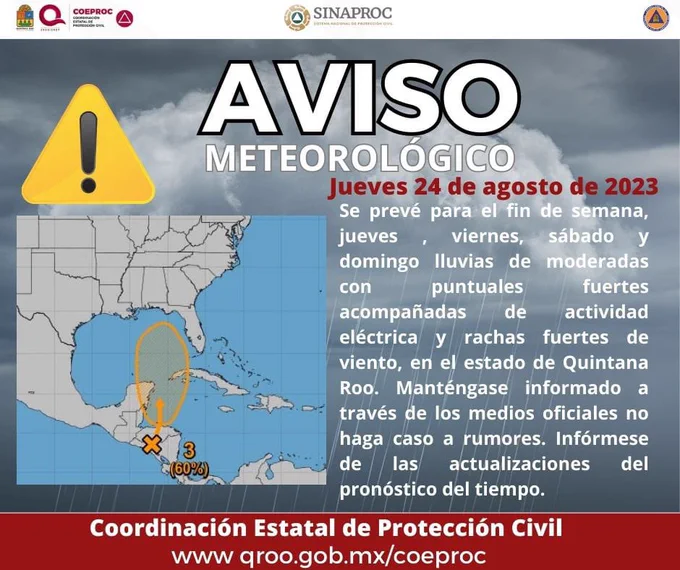 Hasta ahora no representa un peligro para territorio quintanarroense, sin embargo, las autoridades exhortan a la población a mantenerse informado a través de los medios oficiales, no hacer caso a rumores y estar atento de las actualizaciones del pronóstico del tiempo.