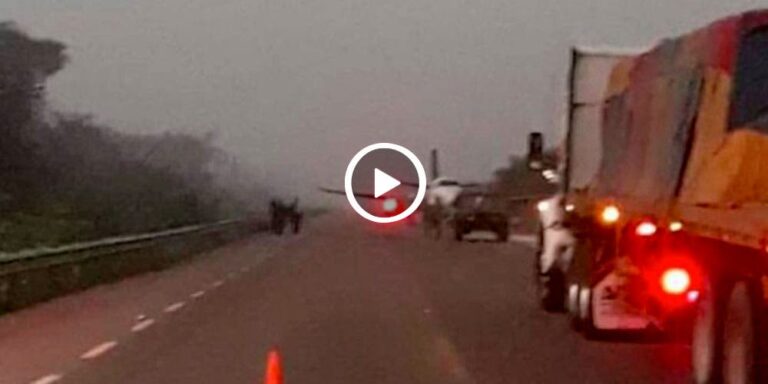 Avión es abandonado a media calle en Quintana Roo (video)