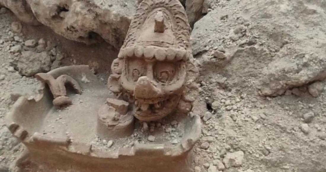 Hallan cabeza del dios maya K’awiil en excavaciones del Tramo 7 del Tren Maya