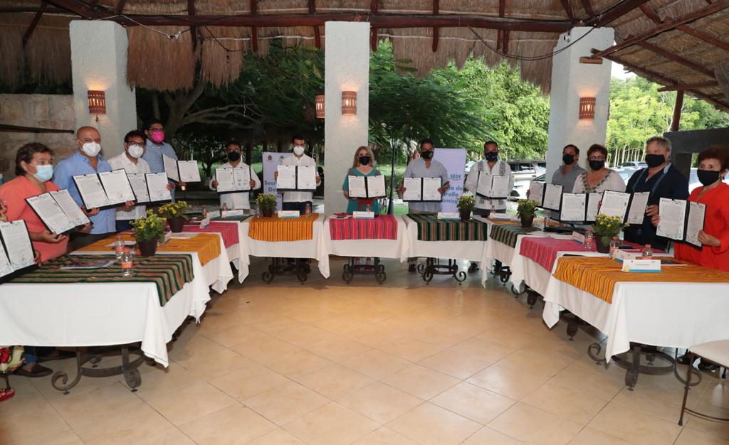 Para contribuir en un avance mucho más rápido en la recuperación económica, se llevó a cabo histórica firma del Acuerdo Protocolario entre la Secretaría de Desarrollo Económico (SEDE) de Quintana Roo, cámaras empresariales, restaurantes y asociaciones de hoteles que, a partir de hoy, se suman al impulso de productos “Hecho en Quintana Roo” y artesanales.