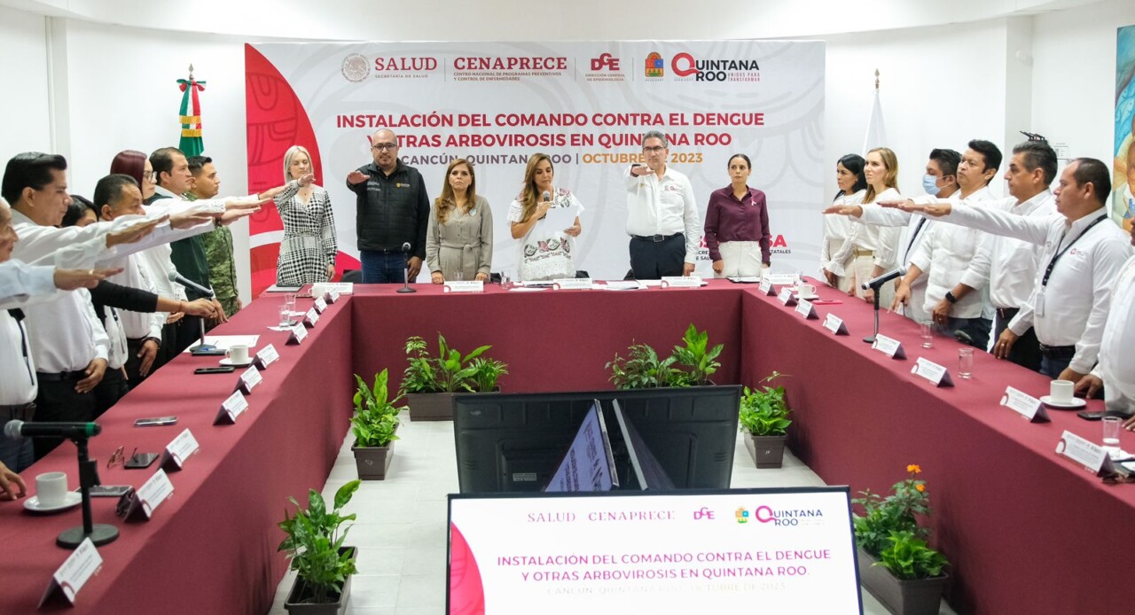 Con la presencia de Fabián Correa Morales, subdirector de enfermedades transmitidas por vector del Centro Nacional de Programas Preventivos y Control de Enfermedades (CENAPRECE), la gobernadora Mara Lezama presidió la instalación del Comando que tendrá como función reforzar técnicamente el operativo implementado para la contención y control del Dengue en Quintana Roo.