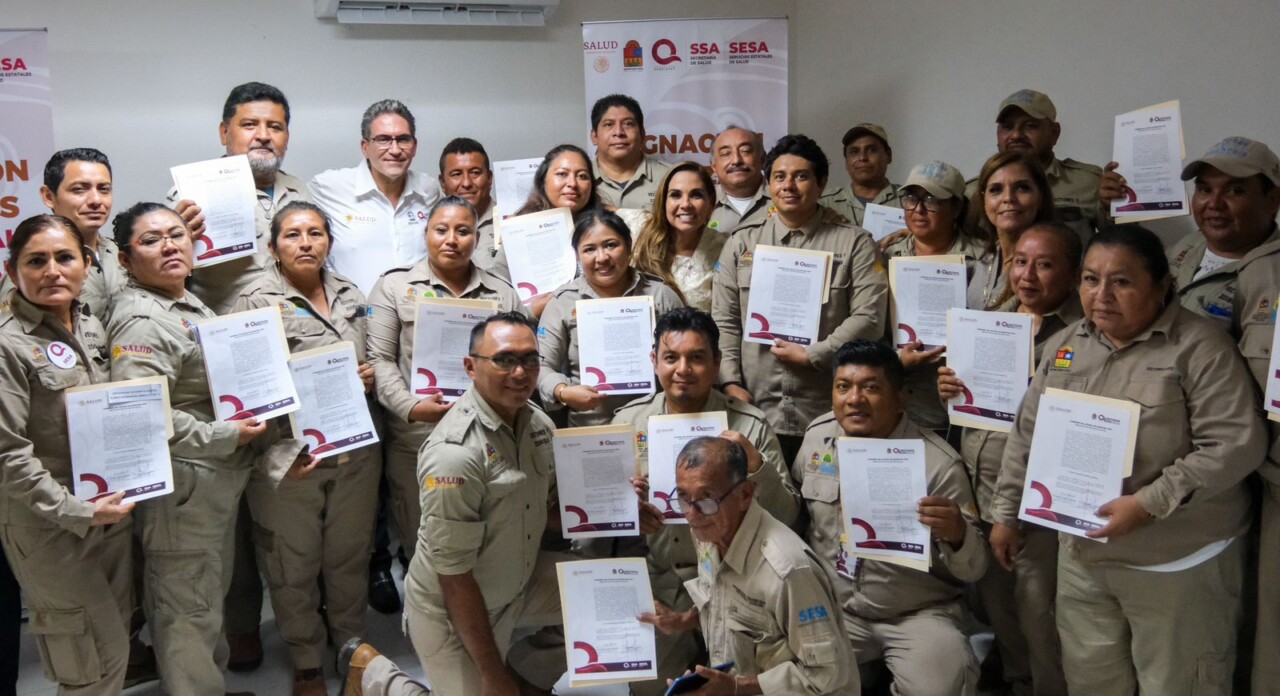Con la instalación del Comando contra el Dengue y otros Arbovirosis y con la entrega de constancias de basificación laboral al personal de vectores, la gobernadora Mara Lezama Espinosa fortalece las acciones para el cuidado de la salud de las personas y cumple su palabra de hacer justicia social a trabajadores que esperaron, hasta 16 años, para tener sus prestaciones.