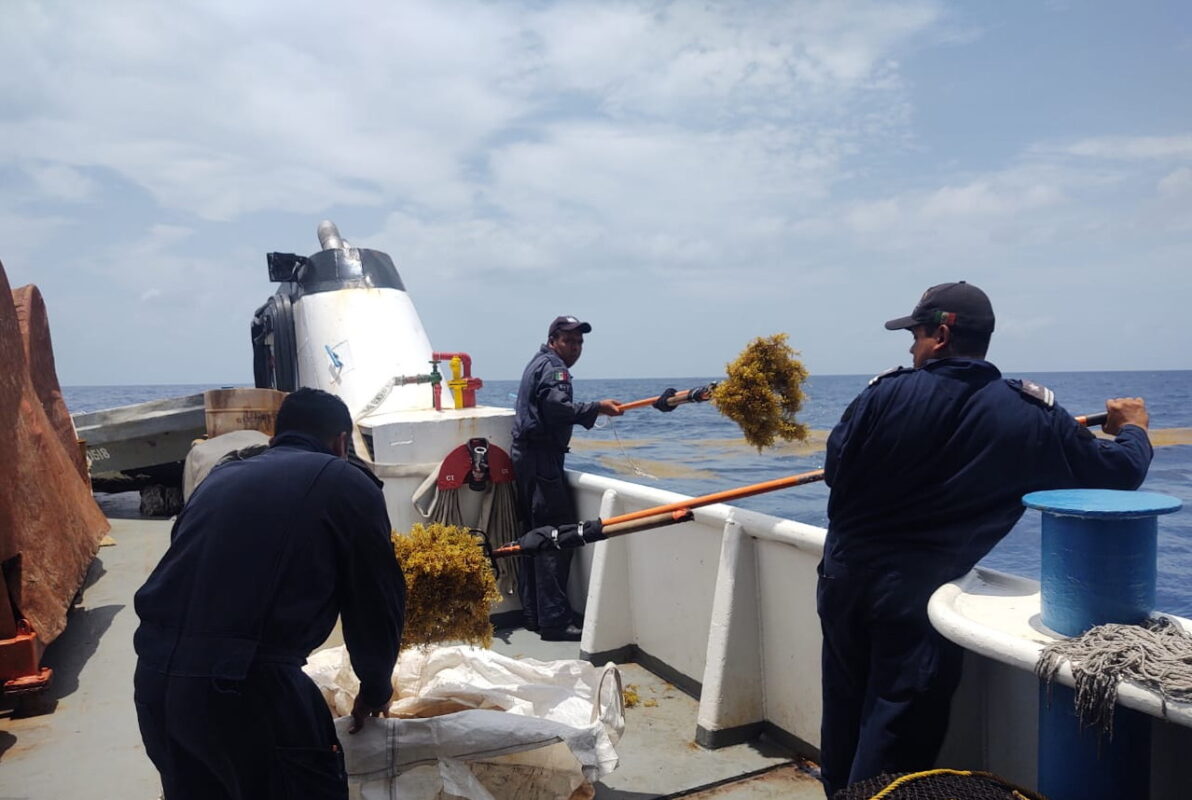 El contralmirante Alejandro López Zenteno, coordinador de la Estrategia para la Atención del sargazo por parte de la Secretaría de Marina, explicó que una surada con rachas de vientos de hasta 35 nudos, registrada hace unos días, obligó a resguardar y desactivar el equipo que atiende el fenómeno en el mar.