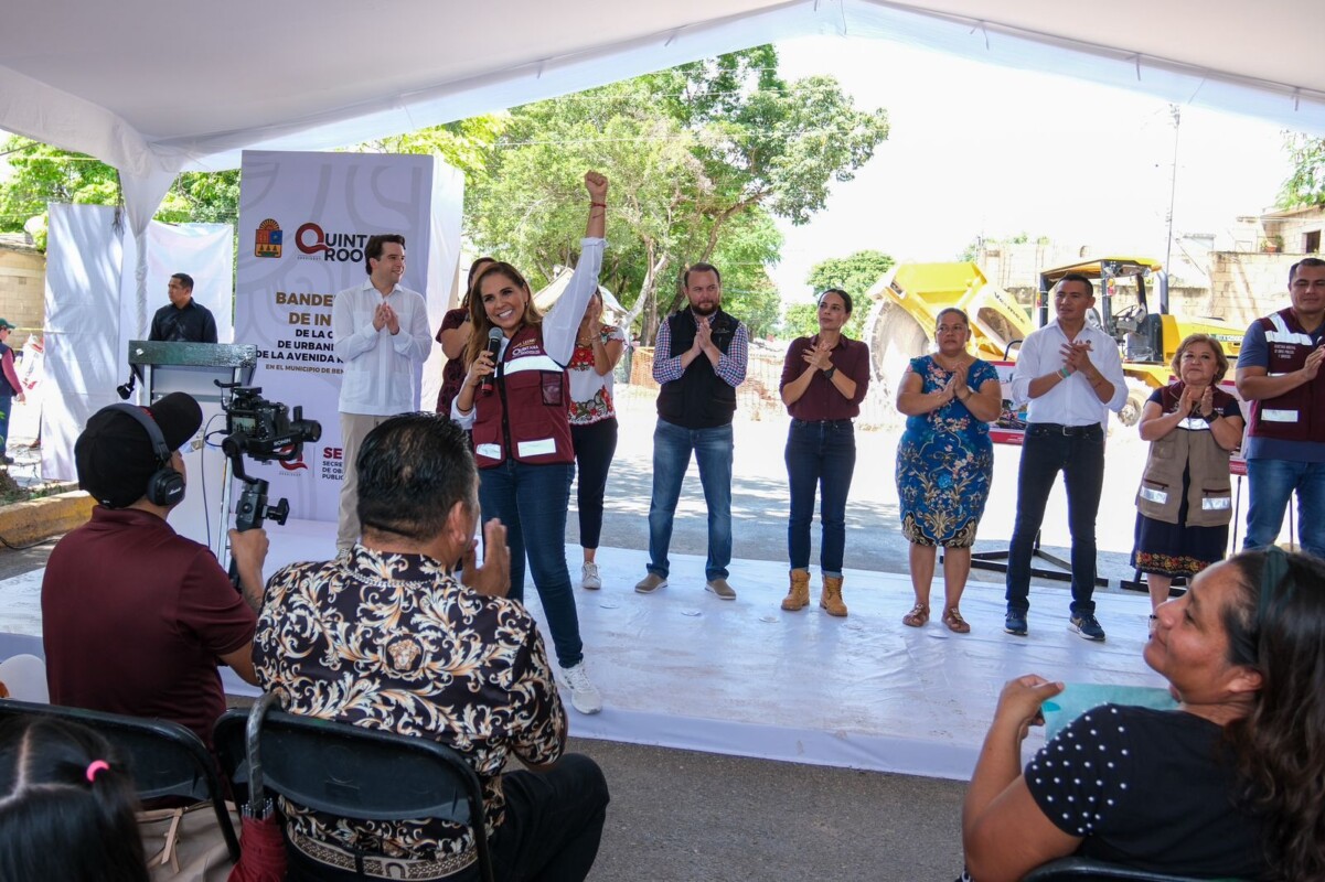 La gobernadora Mara Lezama dio el banderazo de inicio de los trabajos de pavimentación y alumbrado público en la avenida Río Hondo, entre avenidas Chetumal y Tules en Cancún, como parte de un programa de urbanización en el que se invierten 125 millones de pesos en beneficio directo de más de 3 mil 300 habitantes de las supermanzanas 247 y 245 de la colonia Tierra y Libertad 1, 2 y 3.