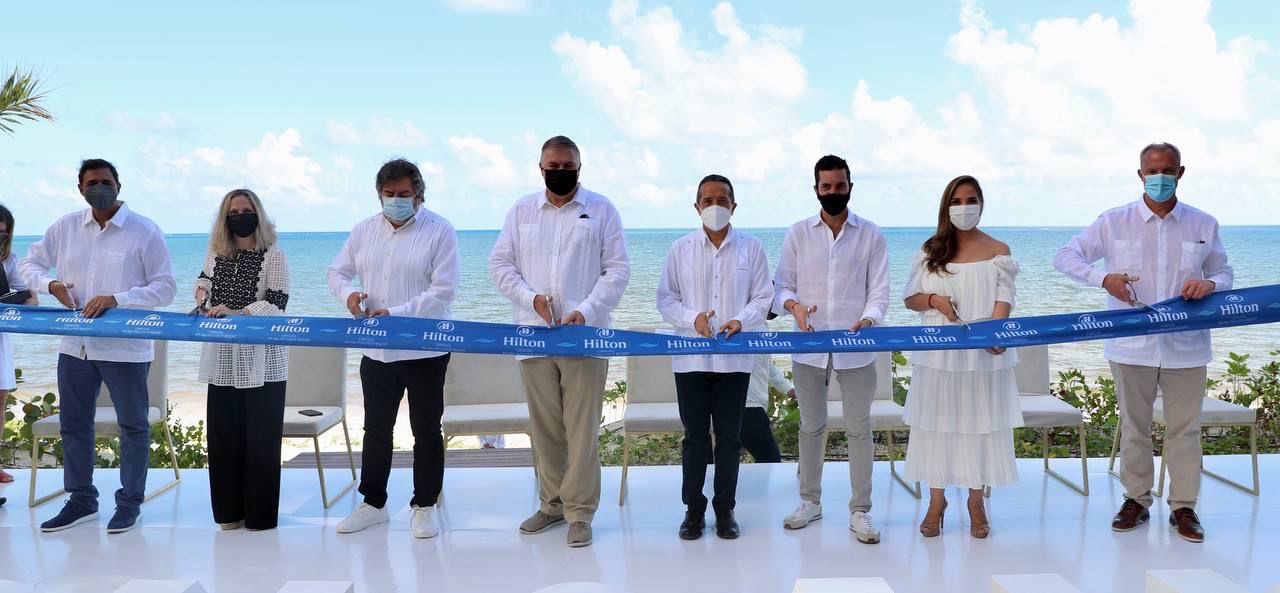 Al evento asistieron Mara Lezama, Presidenta Municipal de Benito Juárez; Rogelio Jiménez Pons, director de FONATUR; Danny Hughes, Presidente Hilton Américas; Charles El Mann Fasja, CEO Parks Holdings; y Jorge Giannattasio, SVP OPS de Latinoamérica & Caribe Hilton para llevar a cabo la ceremonia oficial.