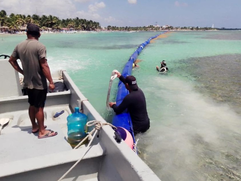 En Tulum, por ejemplo, en esta última semana se instalaron alrededor de 600 metros de barrera antisargazo, que representa aproximadamente el 25% de dos mil 350 metros que se instalarán como parte de la estrategia para la atención del sargazo.