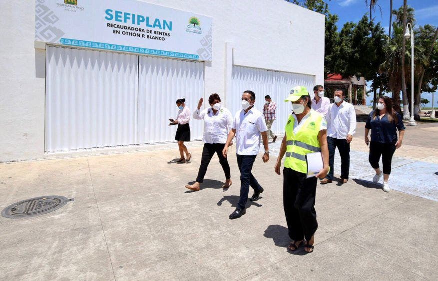 Previamente, el gobernador Carlos Joaquín visitó la Recaudadora de Rentas, del andador Héroes con avenida 22 de enero, para constatar las medidas de higiene y desinfección que se realiza en la dependencia, así como el funcionamiento de lavamanos y tapetes desinfectantes del Palacio de Gobierno.