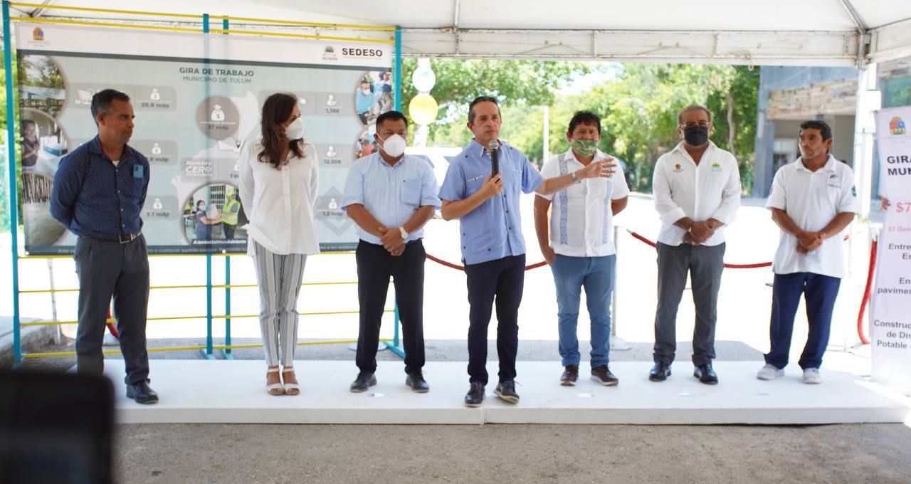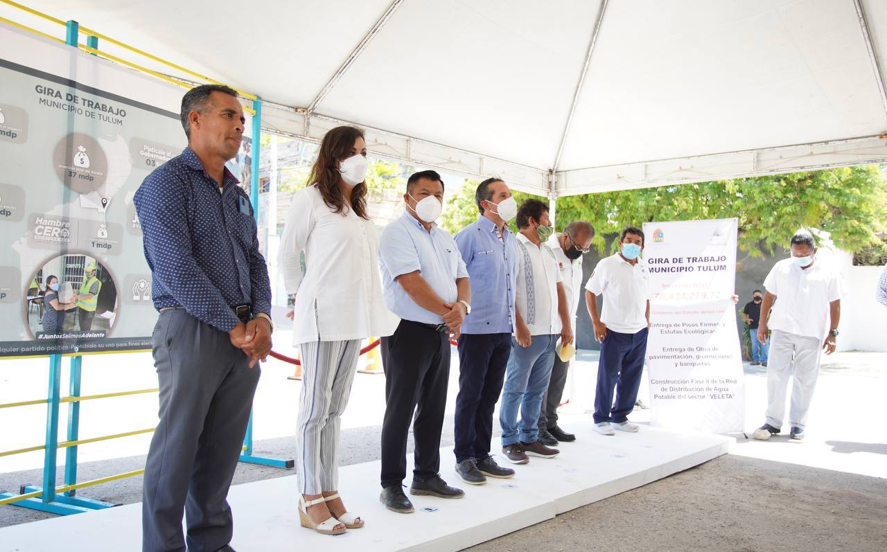 Acompañado por Jaime Mollinedo Gómez, director general de la Comisión de Agua Potable y Alcantarillado (CAPA), el gobernador inauguró en Tulum la construcción de la Fase II de la Red de Distribución de Agua Potable del Sector “La Veleta”, obra que beneficia a 5 mil 536 habitantes.