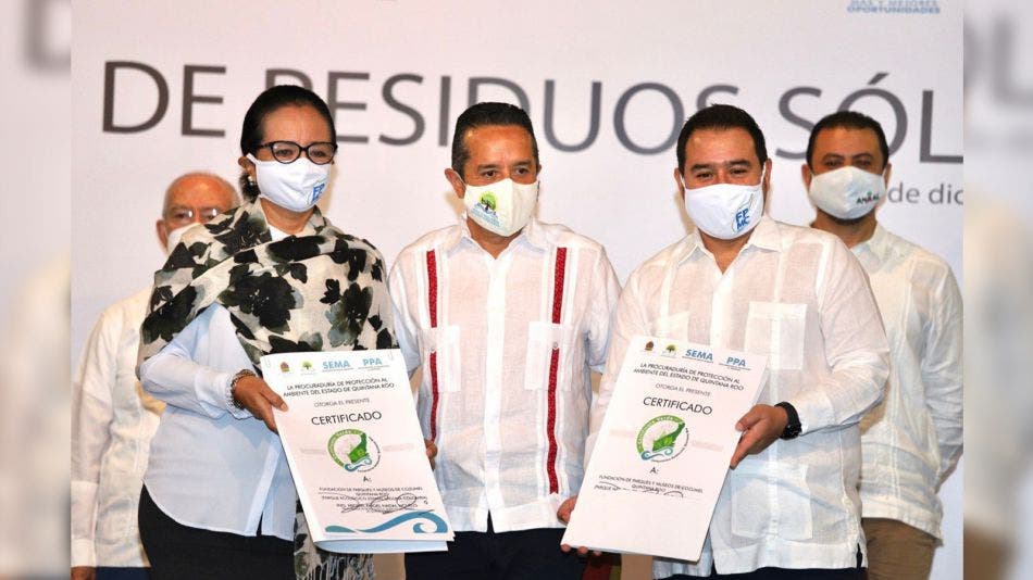 En este marco, el gobernador Carlos Joaquín entregó el Certificado de “Compromiso Ambiental Quintana Roo” al Parque Ecoturístico Punta Sur y el Parque Natural Chankanaab, ambos administrados por la Fundación de Parques y Museos de Cozumel (FPMC).