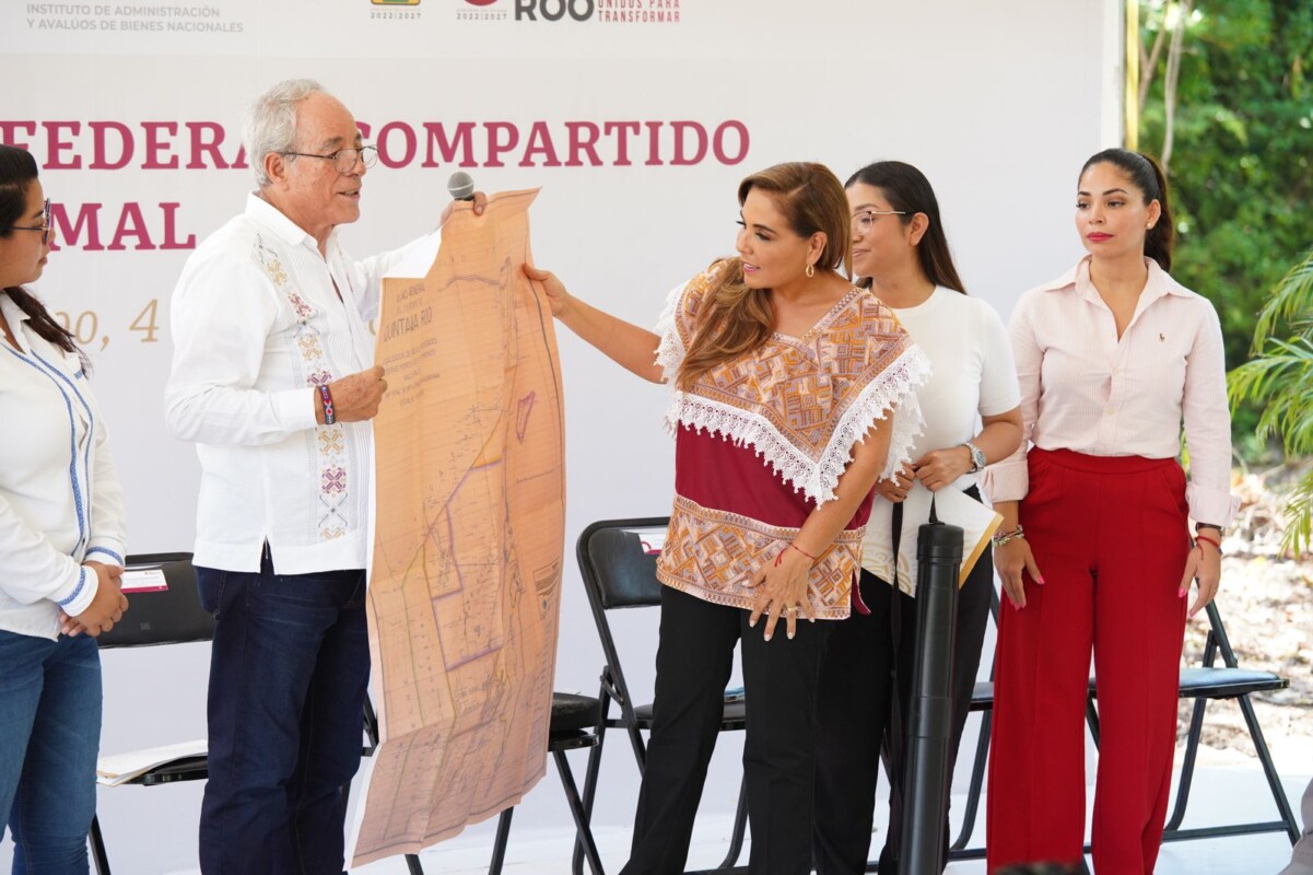 Entregó a la gobernadora Mara Lezama una copia fiel al original, sellado y firmado, de cómo estaban los límites de la entidad en 1897, cuando era territorio Quintana Roo, un documento histórico que obraba en los archivos del INDAABIN.