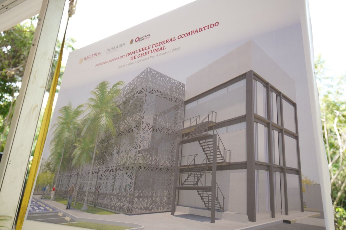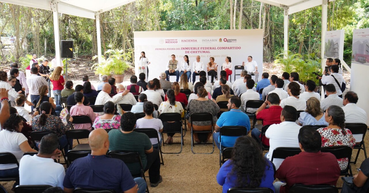 Para acercar a la gente de la capital y del sur del estado los servicios de los gobiernos federal y estatal, la gobernadora Mara Lezama Espinosa y el presidente del Instituto de Administración y Avalúos de Bienes Nacionales (INDAABIN) Víctor Martínez Bolaños, colocaron la primera piedra para la construcción del primer Inmueble Federal Compartido en Quintana Roo.