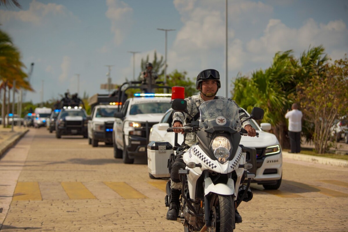 En el malecón Tajamar, Mara Lezama dio el banderazo para poner en marcha el Plan de Seguridad en el que participan más de cinco mil 300 elementos en los 11 municipios, de los cuales 288 son de la policía turística en Benito Juárez, Cozumel, Othón P. Blanco, Isla Mujeres, Solidaridad, Tulum y Bacalar.