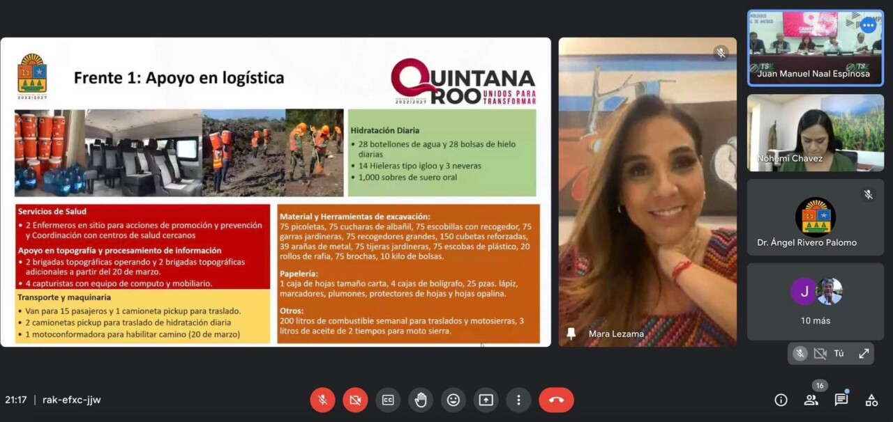 En reunión de evaluación sobre los avances de salvamento arqueológico del tramo 7 del Tren Maya, la gobernadora Mara Lezama Espinosa informó que se ha alcanzado el 100% en el proceso de exploración del Frente 1, de la cual es coordinadora, en el que se ha identificado todos los vestigios arqueológicos.