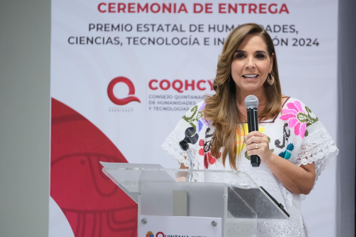 La entrega del Premio Estatal de Humanidades, Ciencias, Tecnología e Innovación 2024 se realizó en el marco del Nuevo Acuerdo por el Bienestar y Desarrollo de Quintana Roo que impulsa la gobernadora Mara Lezama como compromiso del gobierno del estado, a través del COQHCYT, para incentivar a la población científica, humanística y tecnóloga, así como también para lograr que más jóvenes se integren al campo de la investigación.