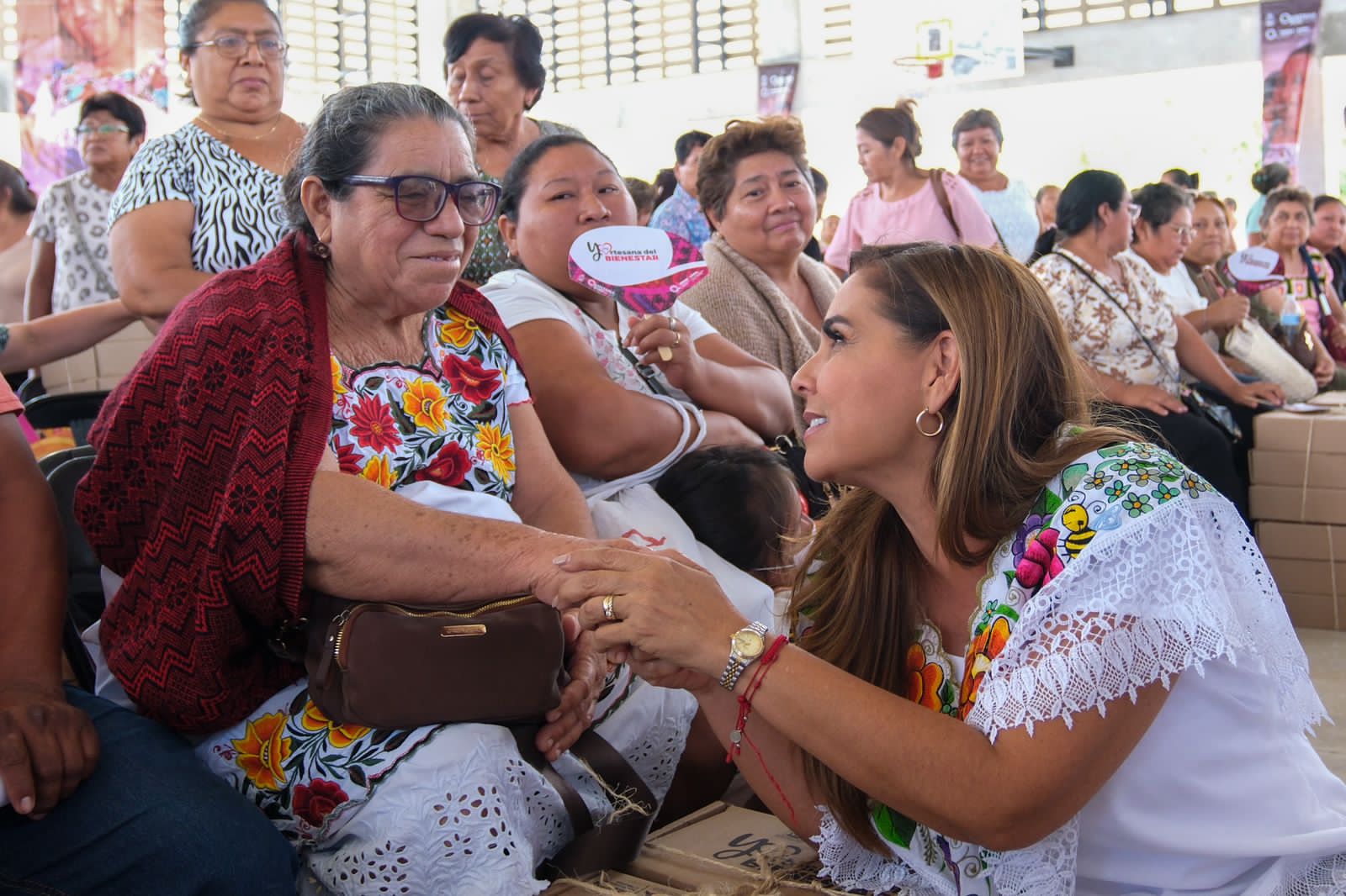 La gobernadora estuvo acompañada de la presidenta honoraria del Sistema DIF Quintana Roo, Verónica Lezama Espinosa; de la presidenta municipal de Benito Juárez Ana Paty Peralta de la Peña; del secretario de Bienestar, Luis Pablo Bustamante Beltrán; y de la directora general del Instituto Estatal de Economía Social, Perla Aguilar Lara.