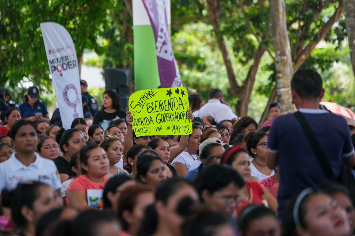 En el domo deportivo de la colonia Zetina Gasca, en donde fue entregando las tarjetas una a una, la gobernadora de Quintana Roo afirmó que con este apoyo se busca empoderarlas, para que alcen la voz, porque en este gobierno si se les escucha y se les cree, porque son parte central del Nuevo Acuerdo por el Bienestar y Desarrollo.