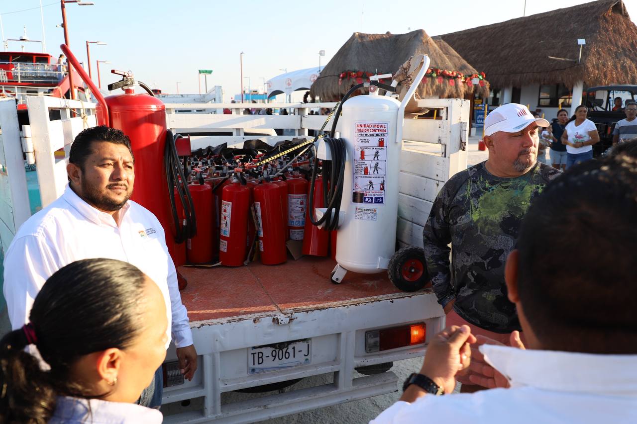 También se entregó material y equipo para la atención y prevención de emergencias en la isla, el cual será distribuido entre los integrantes del Cuerpo de Bomberos y empresarios turísticos.