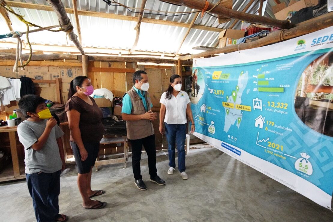Otras acciones de apoyo social, a través de la SEDESO, se instalaron más de 13 mil 300 estufas ecológicas, ahorradoras de leña, en 181 localidades y se construyeron más de 3 mil pisos firmes de concreto, en 103 comunidades con las que mejoró la calidad y los espacios para la vivienda.