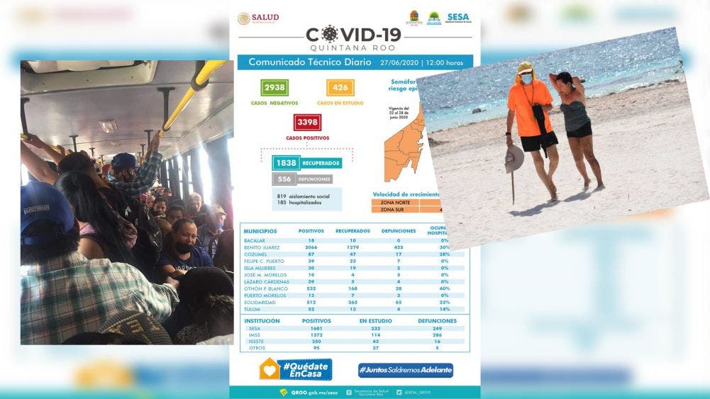 El día de hoy, la cifra estatal se estableció en 3398 casos positivos con 94 nuevos casos en las últimas 24 horas, en cuanto a fallecidos, los números aumentaron de 551 el día de ayer a 556 hoy, o sea, 5 nuevos fallecimientos, de los cuales tres sucedieron en la ciudad de Cancún.
