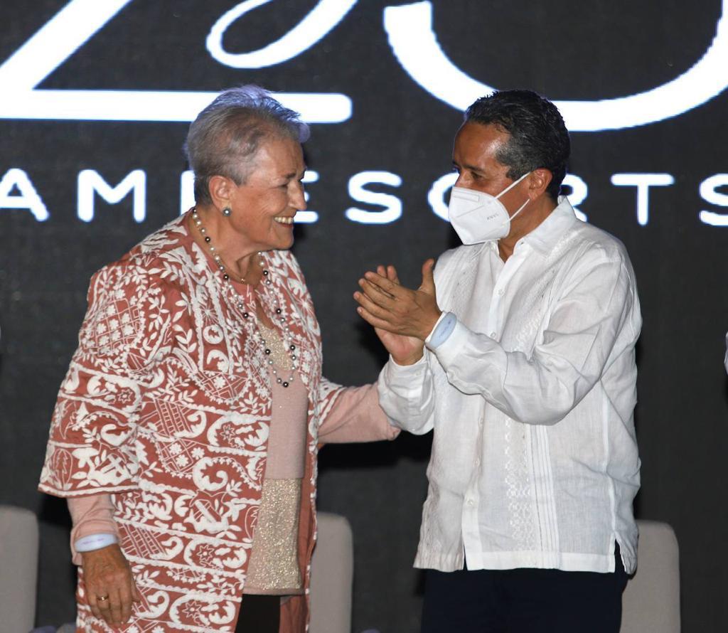 “Quiero reconocer a Carlos Joaquín, por su apoyo, por su entrega, por su esfuerzo que ha puesto no solo en Quintana Roo, sino en México, nos acompañó a colocar la primera piedra y hoy a inaugurar este complejo que estoy seguro traerá mas turismo y generará más empleos”