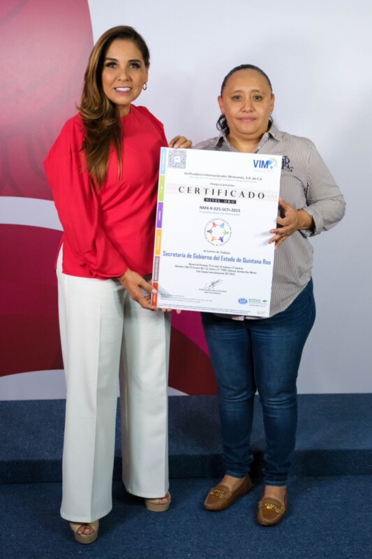 Las acciones emprendidas por la gobernadora Mara Lezama en materia de igualdad y no discriminación laboral permitieron a Quintana Roo, a través de la Secretaría de Gobierno, obtener la Certificación Oro de cumplimiento de la Norma Mexicana NMX-R-O25-SECFI-2015.