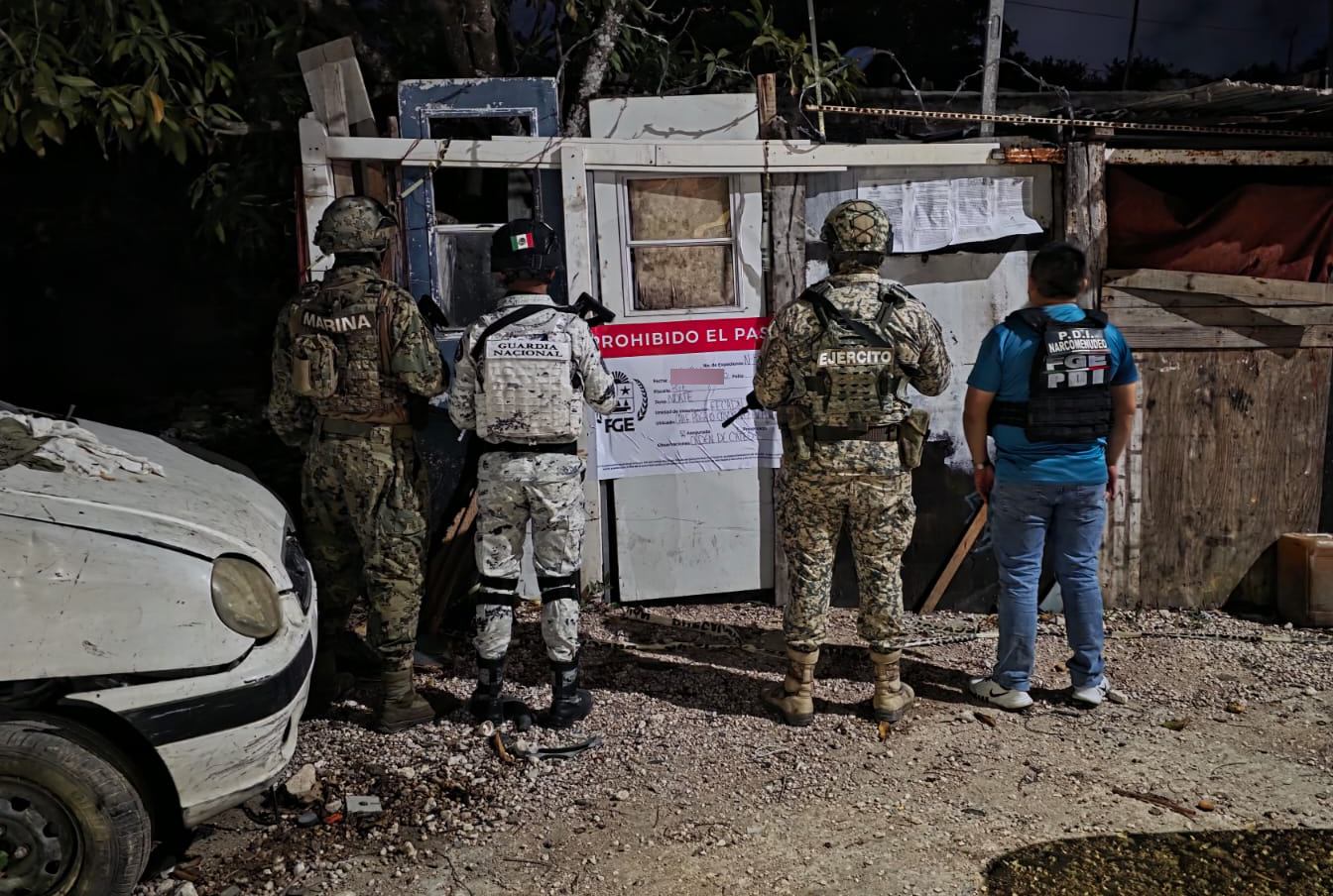 De forma paralela, en Kantunilkín, específicamente en la calle Adolfo López Mateos, se ejecutó otra orden judicial que permitió ubicar presuntas sustancias ilícitas. En ambos puntos, las autoridades colocaron sellos oficiales para asegurar los predios.